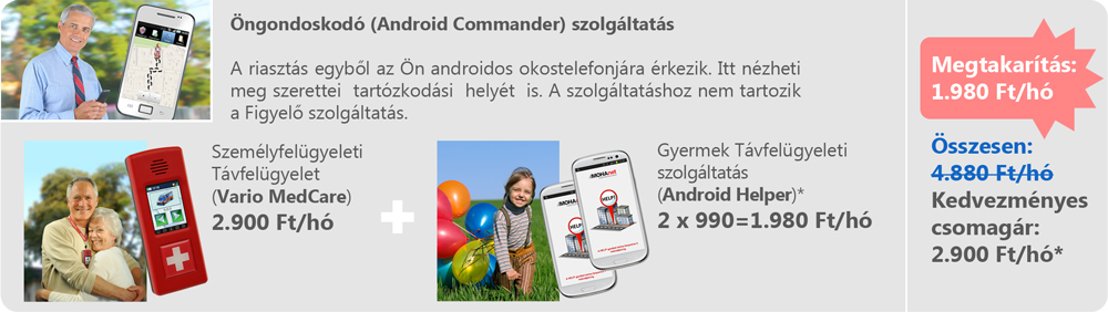 - 2 db Android Helper szoftver Androidos okostelefonra, hogy mindig tudja merre járnak gyermekei, akik baj esetén egyetlen gombnyomással értesíthetik Önt. (nem tartalmazza az okostelefont és annak mobiltelefon előfizetését)