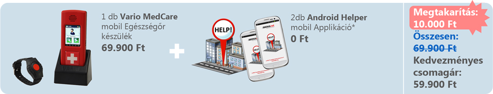 - 1 db Vario MedCare 4 funkciós készülék, mellyel segítheti idős hozzátartozói mindennapjait és a távfelügyeletnek köszönhetően mindig biztonságban tudhatja őket.
