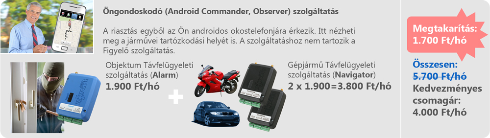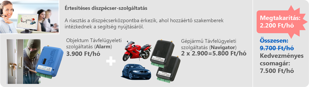 - 2 db Gépjármű (autó, motor) Távfelügyeleti szolgáltatás (Navigator)