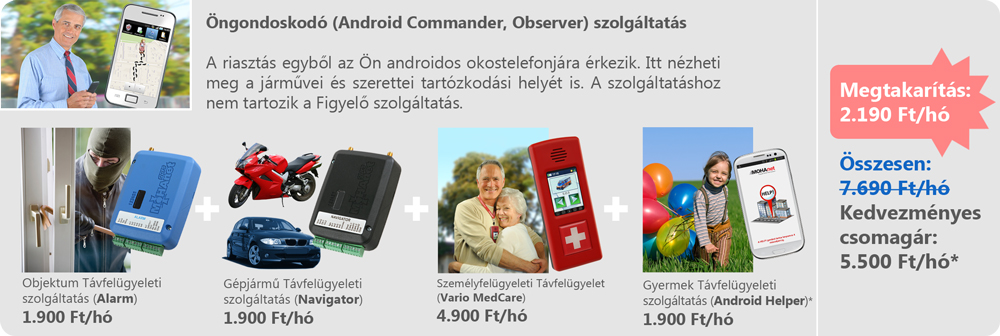 *Az Android Helper szolgáltatás nem tartalmazza az okostelefont és az okostelefonhoz tartozó mobil előfizetési csomagot!2. Értékőr csomag, amellyel biztosíthatja értékeinek felügyeletét (a csomag egy objektum és két jármű felügyeletére lett kialakítva)